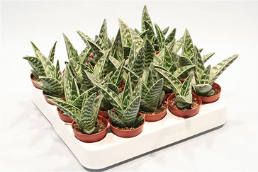 Этот очаровательный суккулент мгновенно приковывает взгляд: сочные зелёные листья украшены изящными белыми полосками, создающими эффект природной мозаики. Компактный размер делает его идеальным решением для любого пространства — от подоконника до офисной полки.
