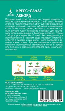 - Семена Кресс-салат Аккорд ароматный цв/п