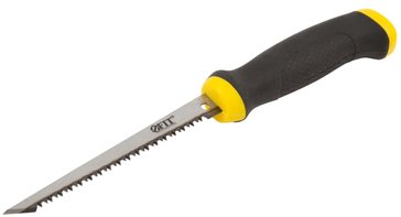 Ножовка для гипсокартона 150 мм FIT IT 15377 имеет специальное узкое утолщенное лезвие, изготовленное из стали 65 Mn, которое прекрасно справится как с прямой, так и с фигурной резкой гипсокартона. Высокочастотная закалка зубьев обеспечивает долгий срок службы инструмента.