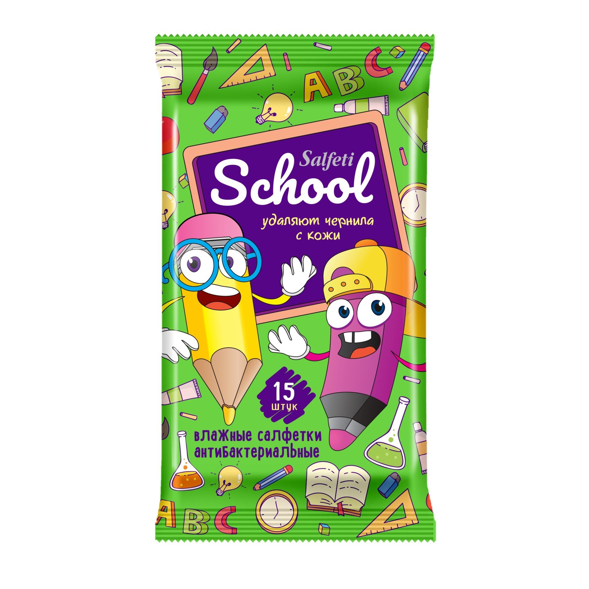- Салфетки влажные антибактериальные Salfeti 15шт School