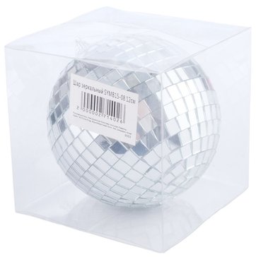 Шар оформлен небольшими зеркальными элементами, которые эффектно преломляют свет прожекторов или гирлянд и наполняют помещение необычными цветными бликами.