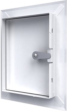 Люк-дверца ревизионный с фланцем и замком, стальной, с покрытием полимерной эмалью. Для доступа к скрытым узлам и инженерным коммуникациям.