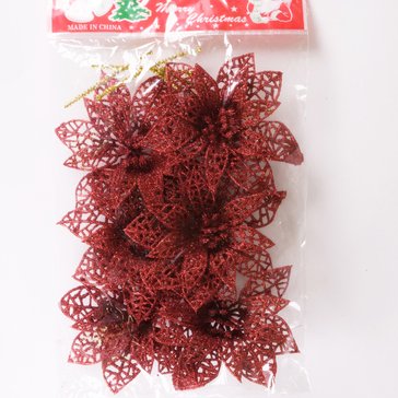 - Украшение SY17GJ-057R цветок пуансетия 10см,красный (6шт)