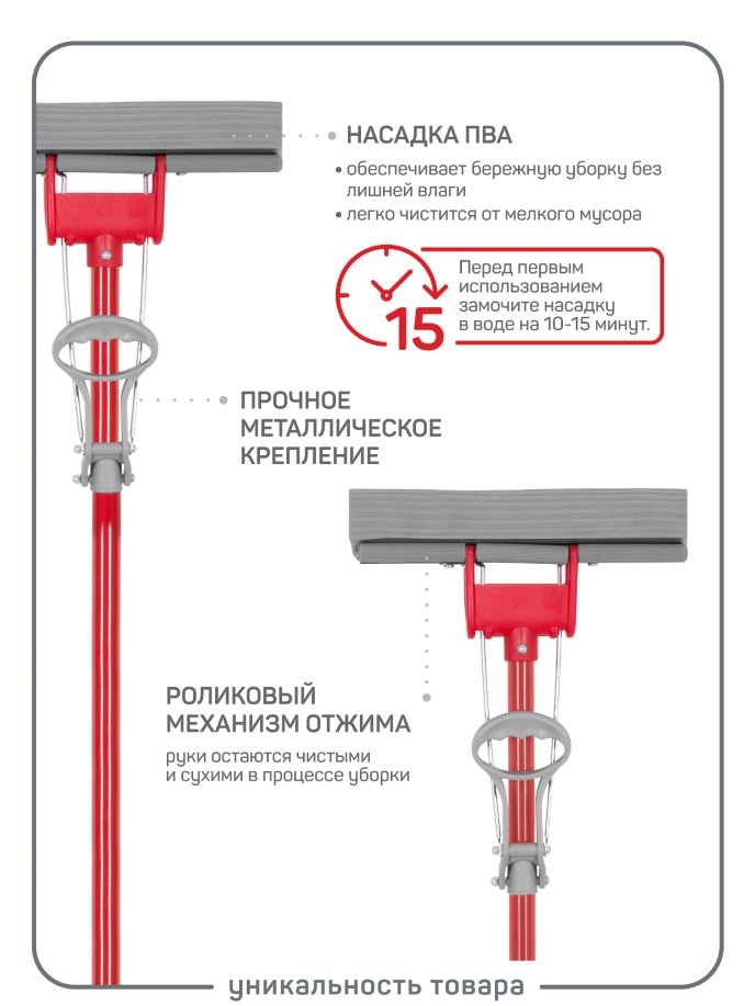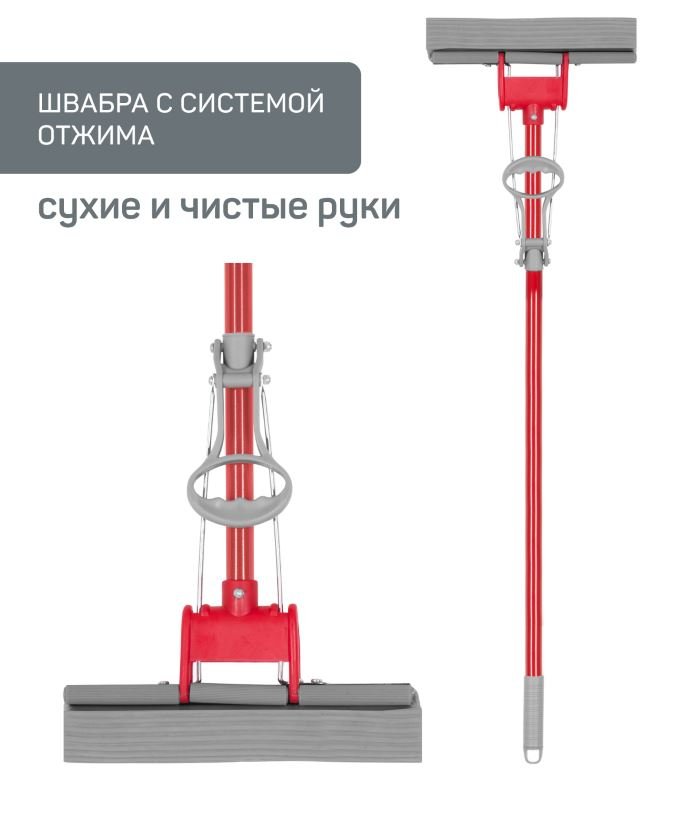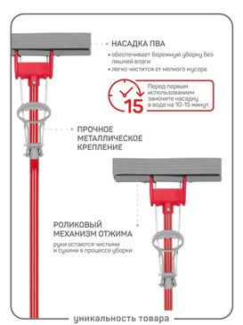 Швабра предназначена для влажной уборки помещения . Механизм отжима позволяет избежать контакта рук с водой