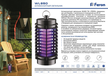 - Светильник антимоскитный WL850-230V 3W Feron
