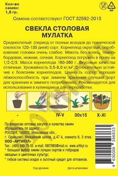 - Семена Свекла столовая Мулатка 1,5г