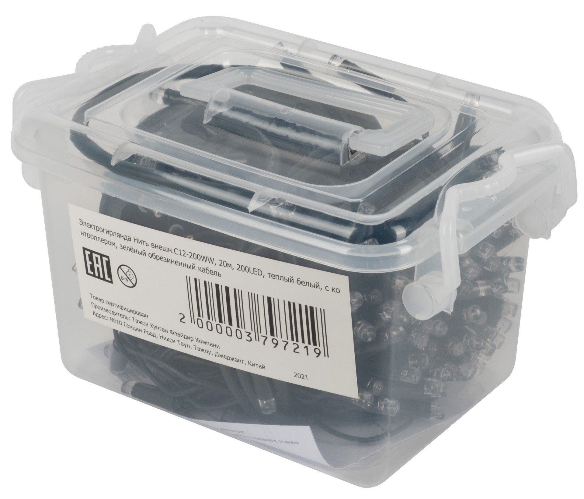 - Электрогирлянда Нить внешняя 20м 200LED,теплый белый С12-200WW