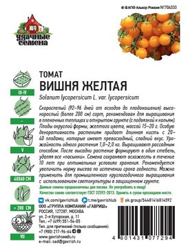 - Семена Томат черри Вишня желтая 0,1г