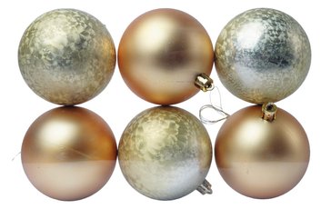 Чтобы декорировать елочку модно и элегантно, подвески на ней должны сочетаться между собой и с убранством комнаты. Важно не просто развесить свой "клад", но и хорошо продумать, где поместить ту или иную деталь. Один из самых простых способов решения этой задачи - выбрать елочные шарики одной цветовой гаммы. В этом вам поможет набор шаров 6 шт с золотым отливом, которые сделают украшение вашей новогодней елки еще более привлекательным.