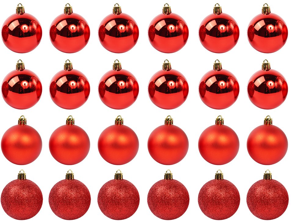 Набор шаров 24шт 6см красный (глянец: 12шт, матовые: 6шт, глиттер: 6шт), SYQA-012103-R