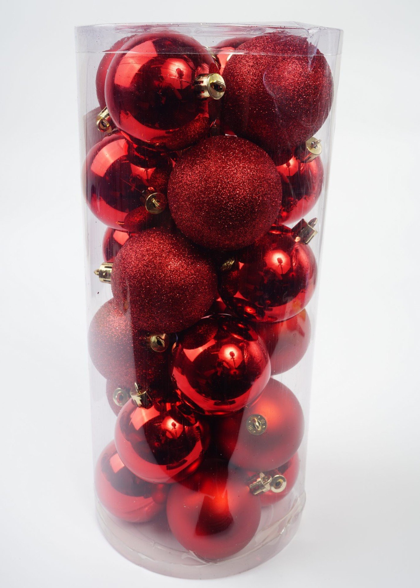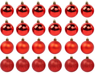 - Набор шаров 24шт 6см красный (глянец: 12шт, матовые: 6шт, глиттер: 6шт), SYQA-012103-R
