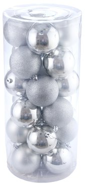 Набор шаров 24шт 6см серебро (глянец: 12шт, матовые: 6шт, глиттер: 6шт), SYQA-012103-S