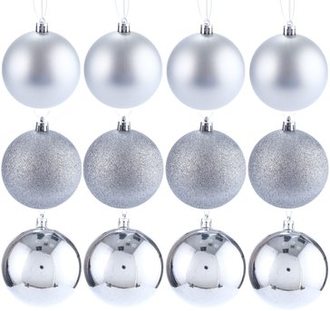 Набор шаров 24шт 8см серебро (глянец: 12шт, матовые: 6шт, глиттер: 6шт), SYQA-012103-S