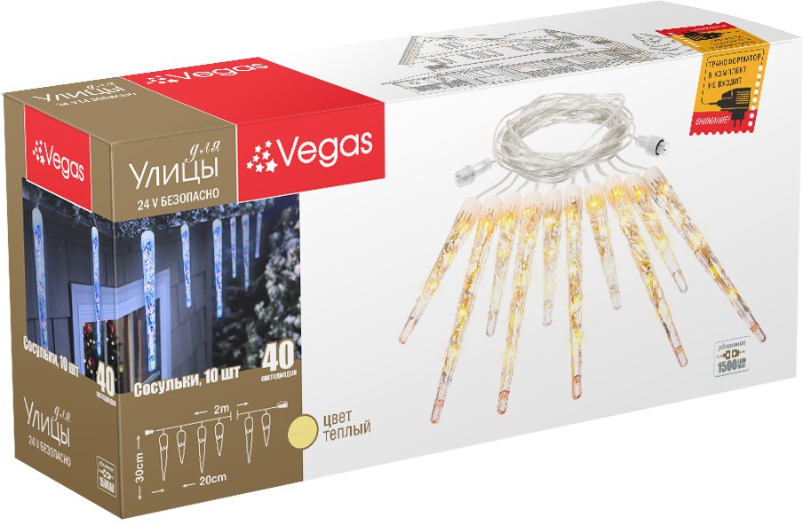 - Электрогирлянда-конструктор Сосульки 10 шт 40 теплых LED ламп 2,7м VEGAS