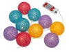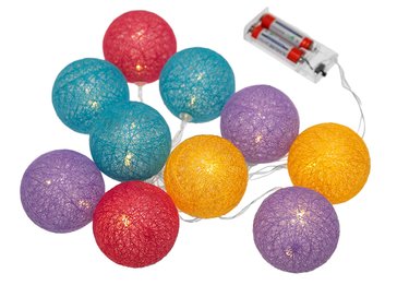 Тайские фонарики «Фейерверк» — эффектная светодиодная гирлянда со степенью защиты IP20 в необычном исполнении. 10 диодов находятся внутри круглых фонариков из хлопковой нити, купол которых мягко рассеивает яркий поток, создавая атмосферу комфорта и уюта. Текстильные декоративные элементы красного, голубого, фиолетового и желтого цветов станут стильным украшением детской, спальни, фотозоны даже в выключенном состоянии. Гирлянда питается от трех элементов типа АА и может использоваться в качестве ночного освещения в спальнях, детских комнатах.