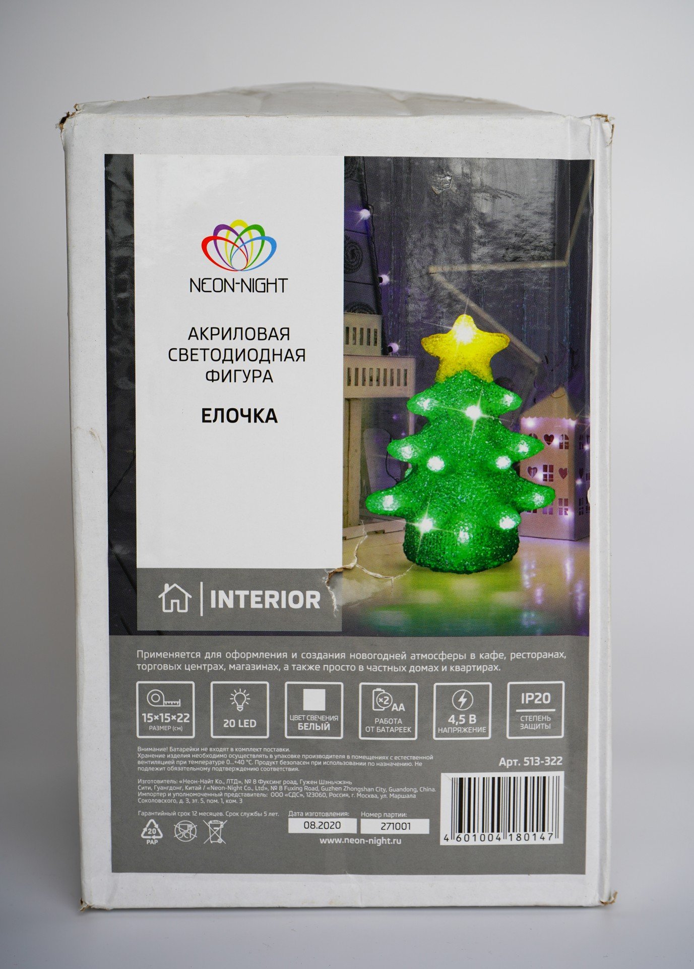 - Фигура акриловая светодиодная Елочка 15х15х22см 20 светодиодов батарейки 2хAA (не входят в комплект)