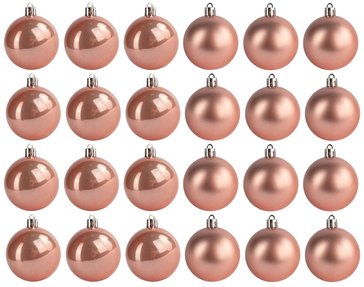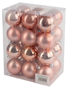 Чтобы декорировать елочку модно и элегантно, подвески на ней должны сочетаться между собой и с убранством комнаты. Важно не просто развесить свой "клад", но и хорошо продумать, где поместить ту или иную деталь. Один из самых простых способов решения этой задачи - выбрать елочные шарики одной цветовой гаммы. В этом вам поможет набор шаров 24 шт в розовом оттенке, которые сделают украшение вашей новогодней елки еще более привлекательным.