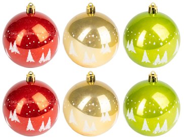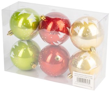 - Набор шаров 6шт 8см зелёный+красный+золото SYQB-0122366
