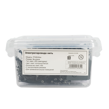 - Электрогирлянда-нить внутренняя 8м 400LED, холодный белый FF400-8cw