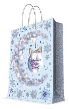 Пакет бумажный новогодний с ламинацией, плотность бумаги 140 г/м2 .