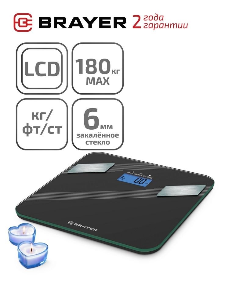 - Весы напольные электронные Brayer BR3734 до 180кг стекло,функция диагностики