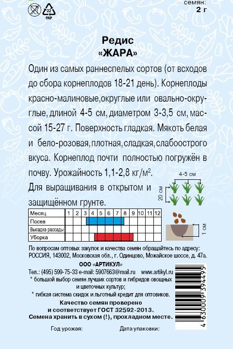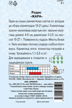 - Семена Редис Жара 2г цветной пакет