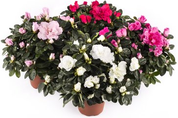 Почему стоит выбрать именно нашу азалию? Роскошное цветение. Яркие цветы красного, белого и розового оттенков создают неповторимый декоративный эффект.