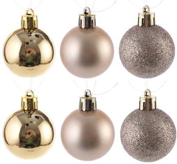 - Набор шаров 6шт 4см, золото (глянец: 2шт, матовые: 2шт, глиттер: 2шт), SYQA-0123121-3