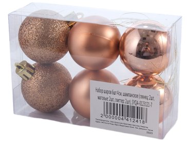 - Набор шаров 6шт 4см, шампанское (глянец: 2шт, матовые: 2шт, глиттер: 2шт), SYQA-0123121-7