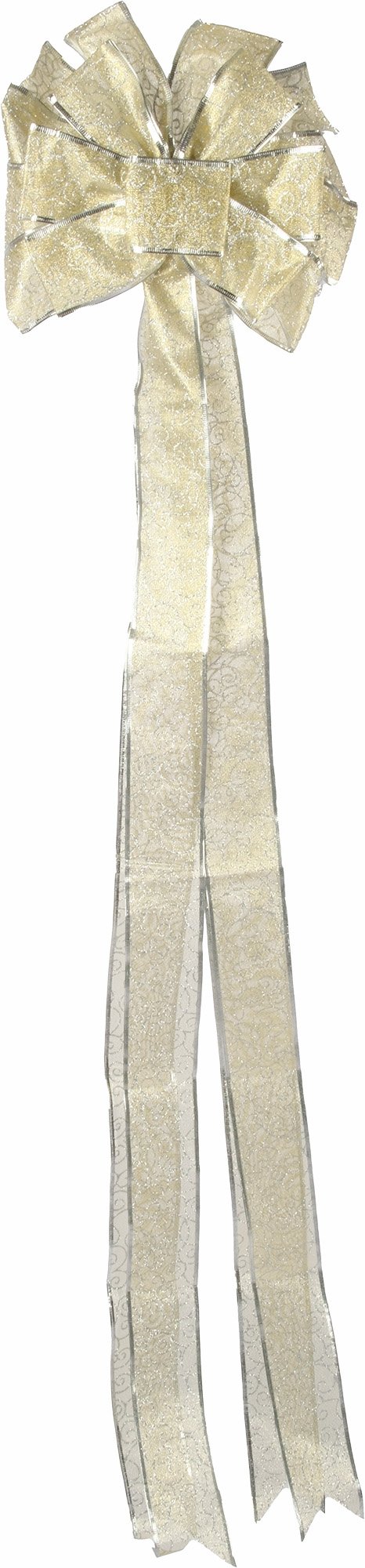 Золотой цвет-это всегда универсальное решение для украшения, тем более, для новогоднего. В этом вам помогут украшения в форме бантиков, которые красиво и лаконично украсят хвойную красавицу и наполнят дом праздничной атмосферой.