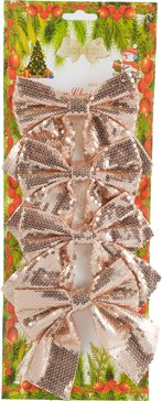 Золотой цвет-это всегда универсальное решение для украшения, тем более, для новогоднего. В этом вам помогут украшения в форме бантиков, которые красиво и лаконично украсят хвойную красавицу и наполнят дом праздничной атмосферой.