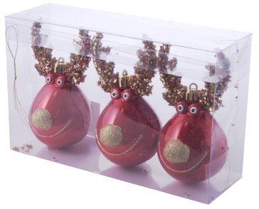- Набор украшений Олени Санты 3шт 11х6см, красный, SYQC-0123142