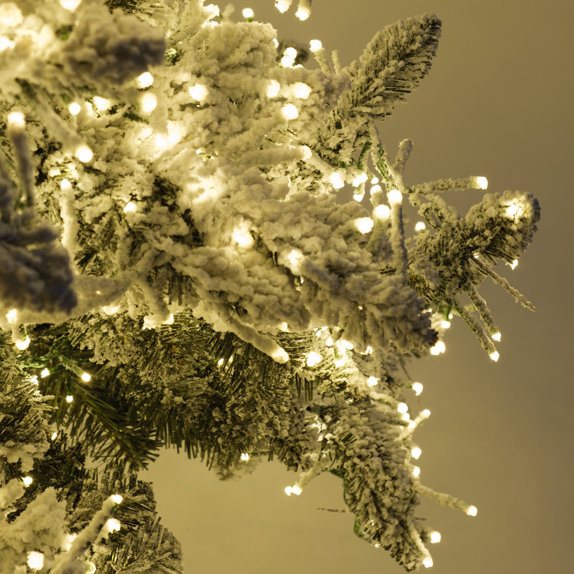 флокированная елка, с эффектом густой заснеженности, LED-подсветка, теплый белый свет, 8 режимов свечения