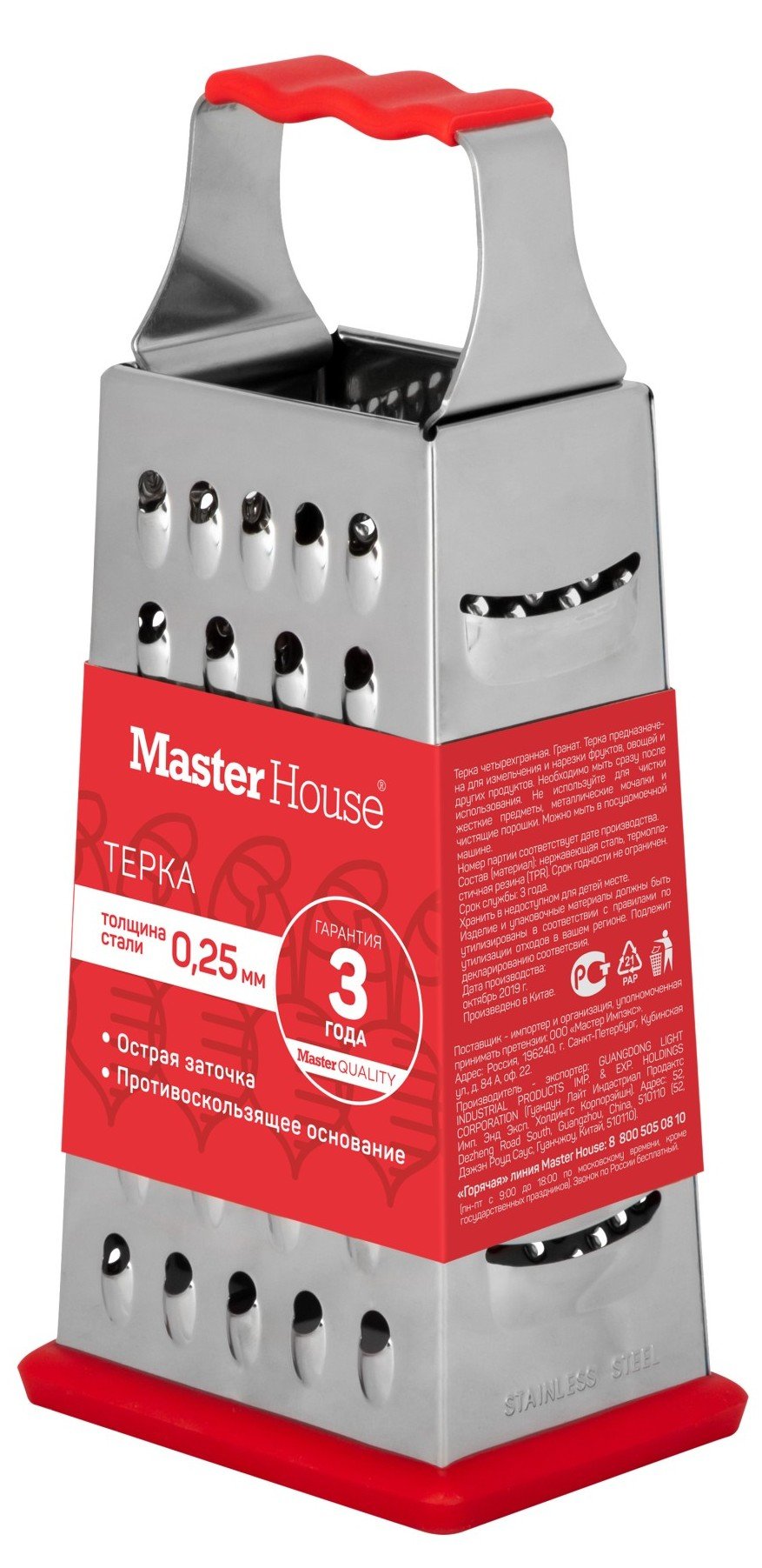 - Терка Master House Гранат 9,1х6,6х21,2см 4-гранная нерж.сталь