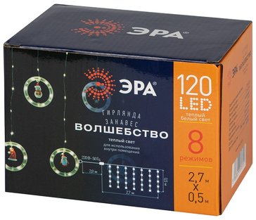 - Гирлянда светодиодная новогодняя занавес Волшебство теплый свет 2,7х0,5м 120 led IP20 ЭРА ENING-MG