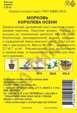 - Семена Морковь Королева Осени 1,5г