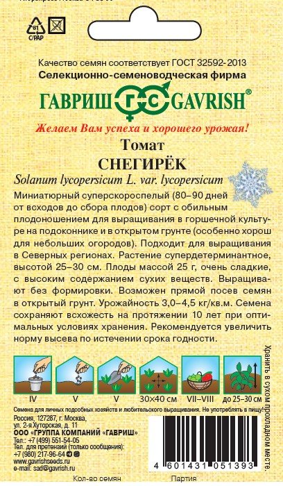 -47%Миниатюрный суперскороспелый (80-90 дней от всходов до сбора плодов) сорт с обильным плодоношением для выращивания в горшечной культуре на подоконнике и в открытом грунте (особенно хорош для небольших огородов). Растение супердетерминантное, высотой 25-30 см. Плоды массой 25 г, очень сладкие, с высоким содержанием сухих веществ. Урожайность 3,0-4,5 кг/м2. В средней полосе России посев на рассаду производят в начале апреля. Пикировку — в фазе первого настоящего листа. Высадка рассады в грунт — в мае в возрасте 30-35 дней. Схема посадки: 30х40 см. Выращивают без формировки. Возможен прямой посев семян в открытый грунт.