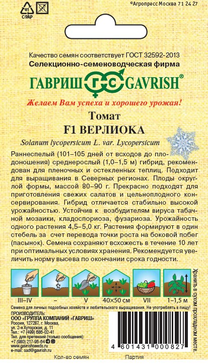 -25%Главное, за что F1 Верлиока так полюбилась садоводам, это независящая от капризов погоды стабильно высокая урожайность — до 4-5 кг с одного куста. Томат является классикой авторской селекции «Гавриш». Гибрид ранний (101-105 дней от всходов до плодоношения), для теплиц и открытого грунта. Растение среднерослое, до 1,5 м в высоту. Кусты прочные, усыпаны круглыми одинаковыми плодами массой 80-90 г, которые идеально подходят для засолки, их не надо резать и они бок о бок укладываются в банку. Плотная, но не грубая кожица позволяет сохранить плоды до середины осени. Мякоть средних по размеру томатов часто сильнее насыщена томатным вкусом и ароматом, в ней меньше семян и пустот, а значит, такие томаты подойдут для соков и томатной пасты. Семена после уборки сохраняют всхожесть в течение 10 лет при оптимальных условиях хранения. Рекомендуется увеличить норму высева по истечении срока годности.