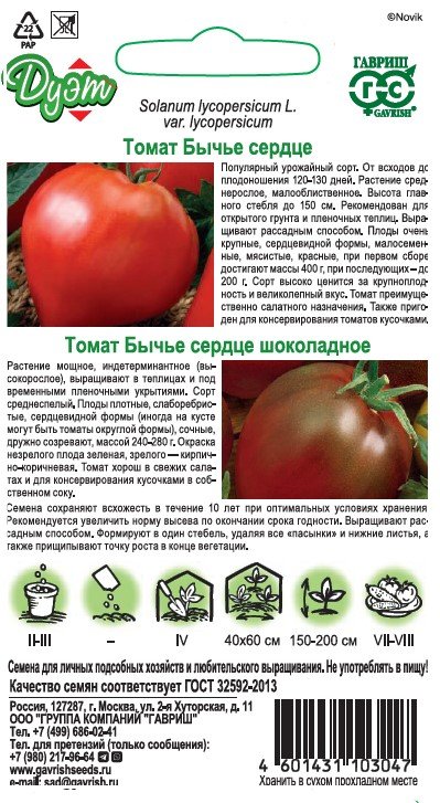 - Семена Томат Бычье сердце 0,05г + Бычье сердце шоколадное 0,05г
