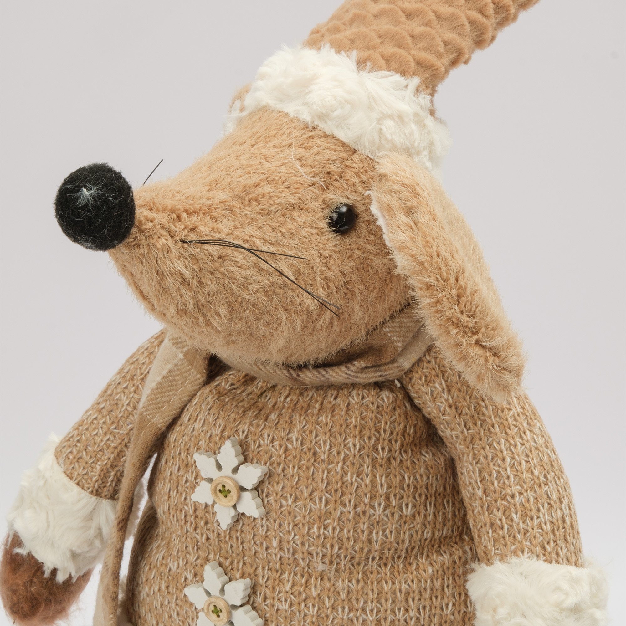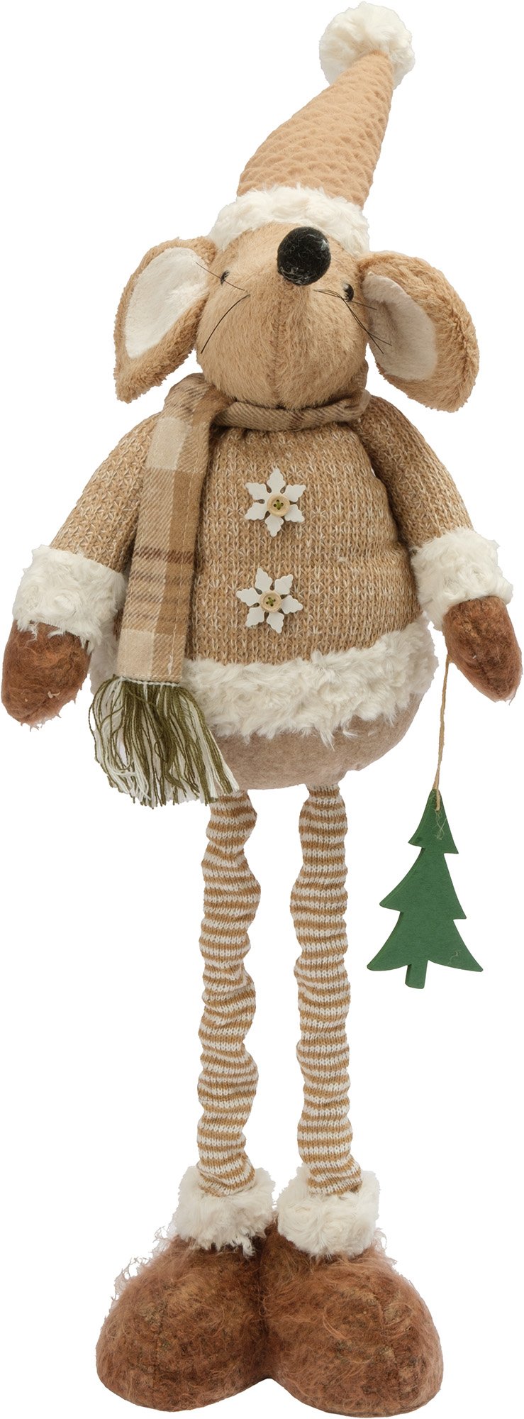 Встречайте нашего очаровательного мышонка Клауса! Его рост составляет 94 см, и он оснащён телескопическими ножками, благодаря которым может стоять на полу или сидеть на столе или тумбочке.