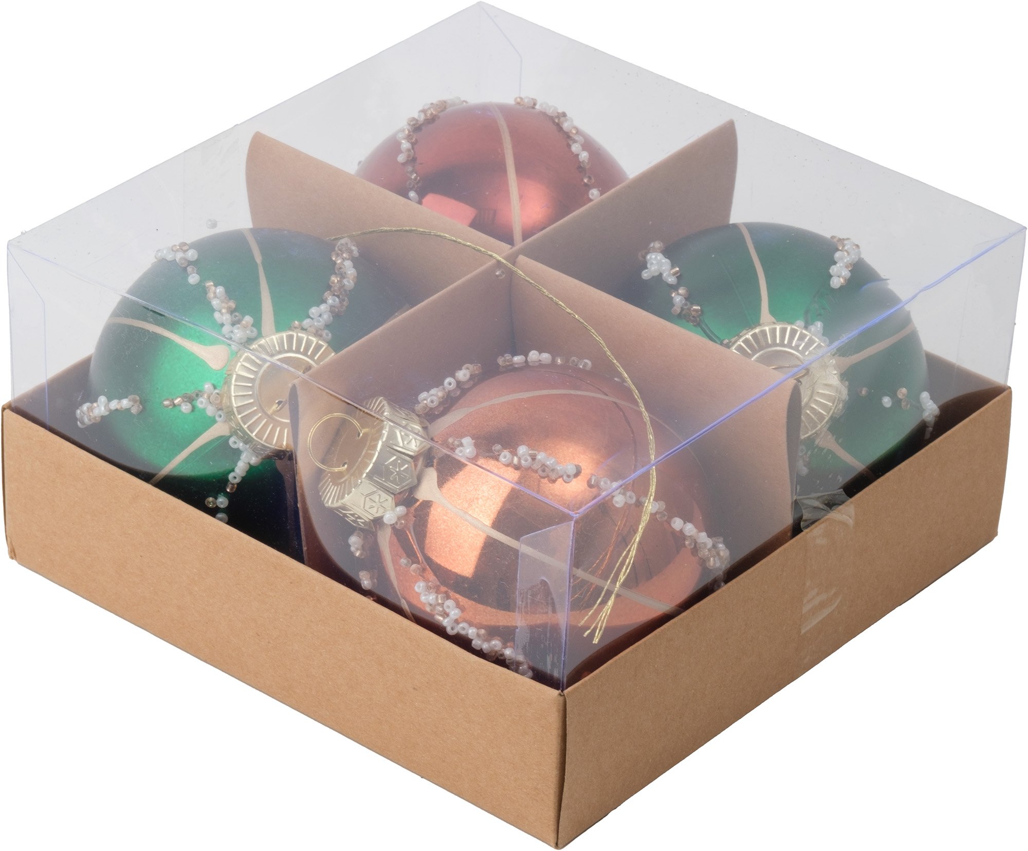 - Набор шаров 4шт 8см зеленый+кофе, глянец/матовый, EUSYQB-0124303