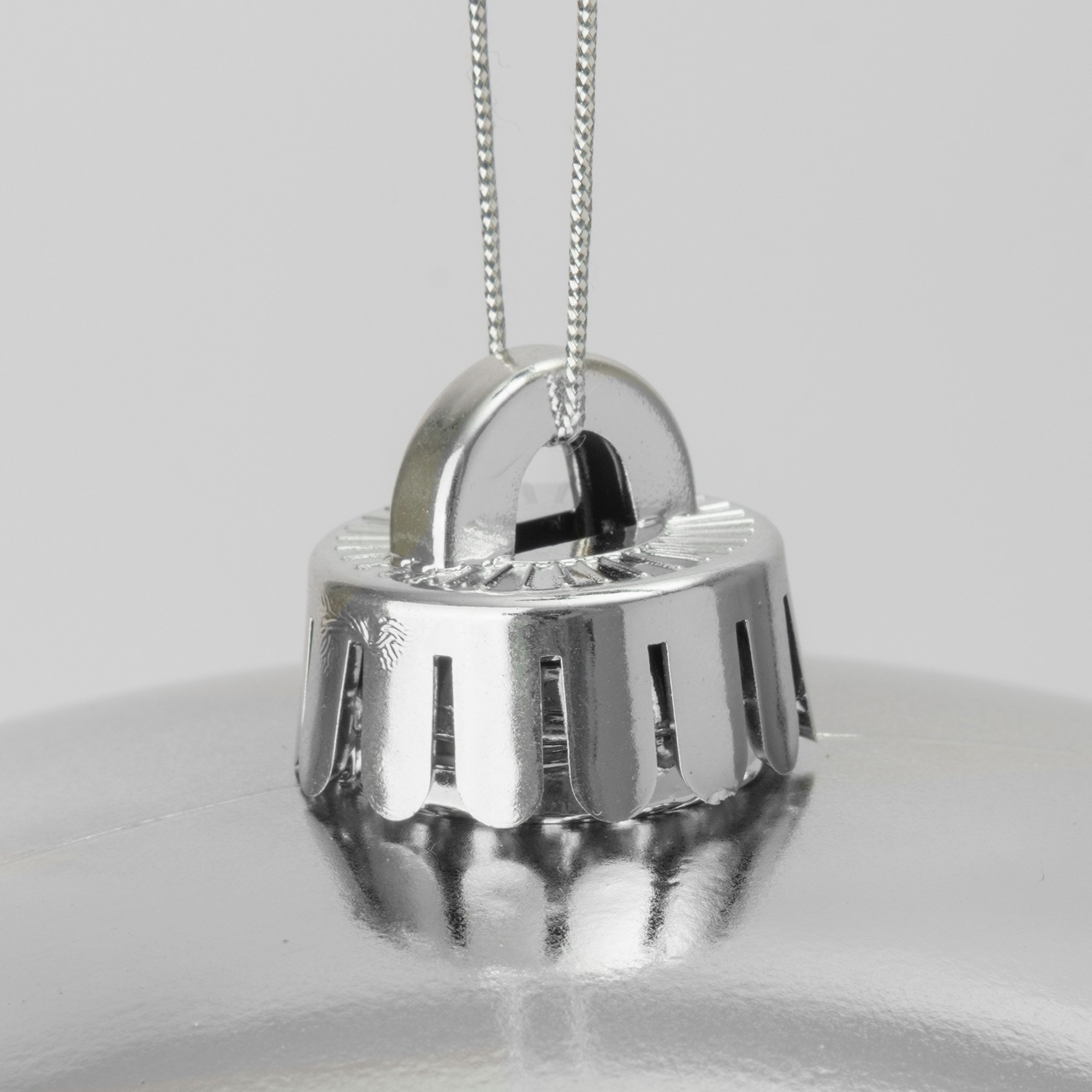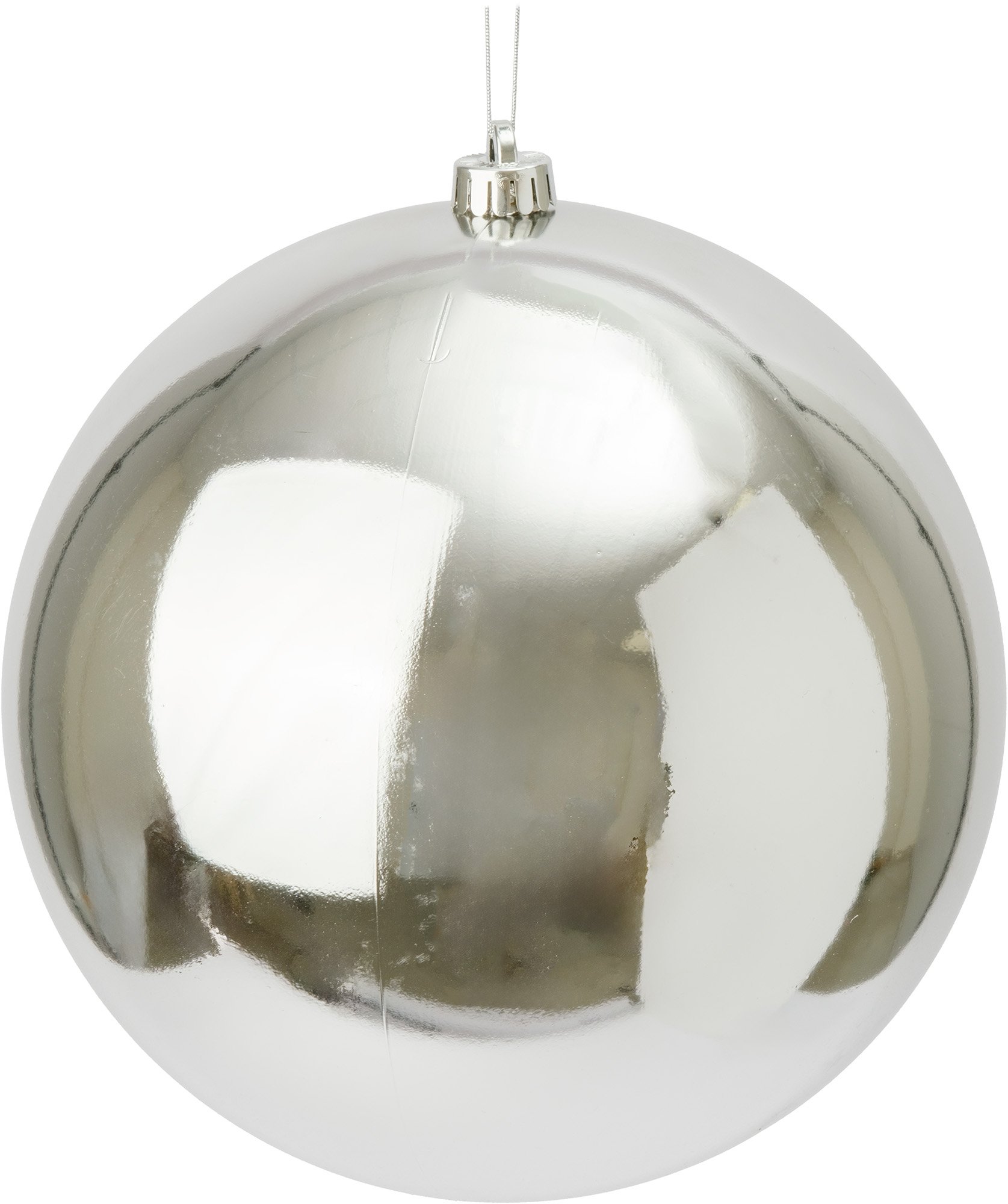 Серебристый цвет символизирует чистоту, благородство и таинственность, а глянцевое покрытие придаст шару особый блеск и роскошь. Он идеально подойдёт для украшения больших уличных ёлок, а также для создания уютного и праздничного настроения в вашем доме или офисе.