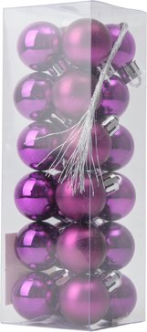 Встречайте Новый год с нашим потрясающим набором фиолетовых шаров! В комплекте вы найдёте 24 стильных и ярких шара размером 3 см, представленных в глянцевом и матовом вариантах.