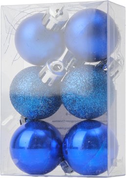 - Набор шаров 6шт 3см синий (глянец 2шт, матовые 2шт, глиттер 2шт) SYQA-0124043-B
