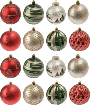 - Набор шаров 16шт 8см, красный+зеленый+жемчужный, EUSYQB-0124019
