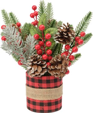 - Украшение настольное 32см с шишками и красными ягодами, SYSPS-0924037