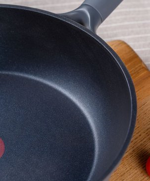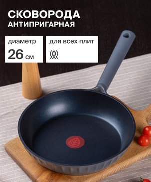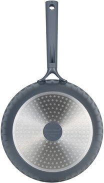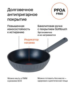 Антипригарное покрытие обеспечивает лёгкое и быстрое снятие пищи, а литой алюминий гарантирует равномерное распределение тепла и долговечность. Индукционное дно позволяет использовать сковороду на любых типах плит, включая индукционные варочные панели.