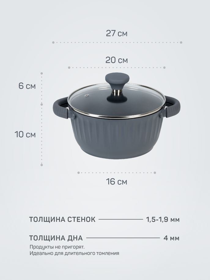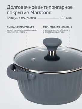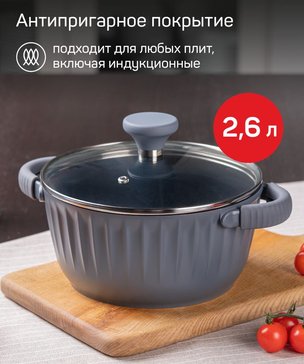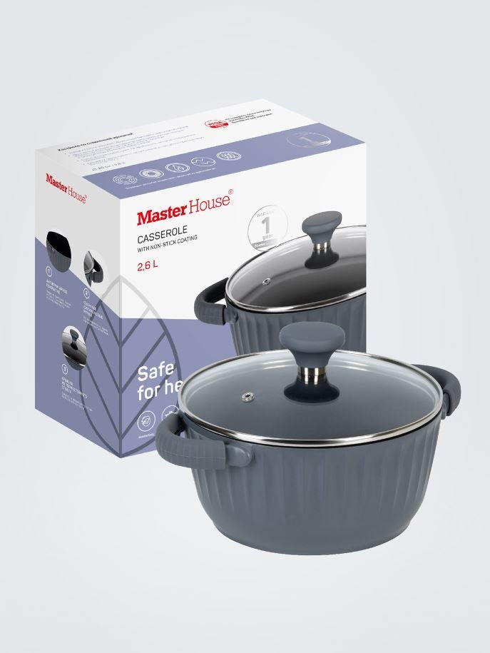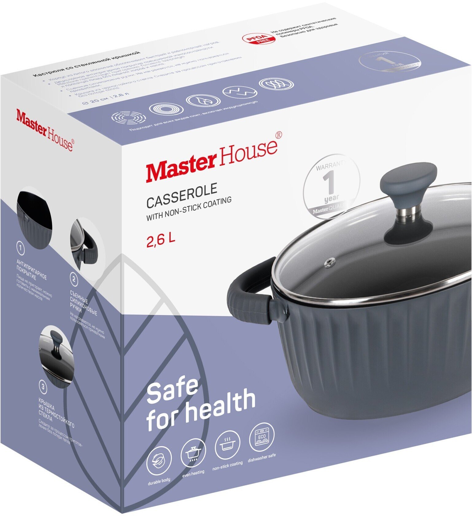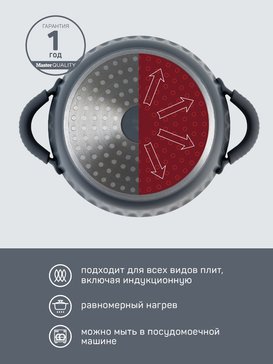 - Кастрюля Master House Шеф Бернардо 2,6л антипригар., литой алюминий, крышка стекло, индукция