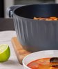 Крышка из термостойкого стекла позволяет контролировать процесс готовки и добавлять ингредиенты без потери тепла.