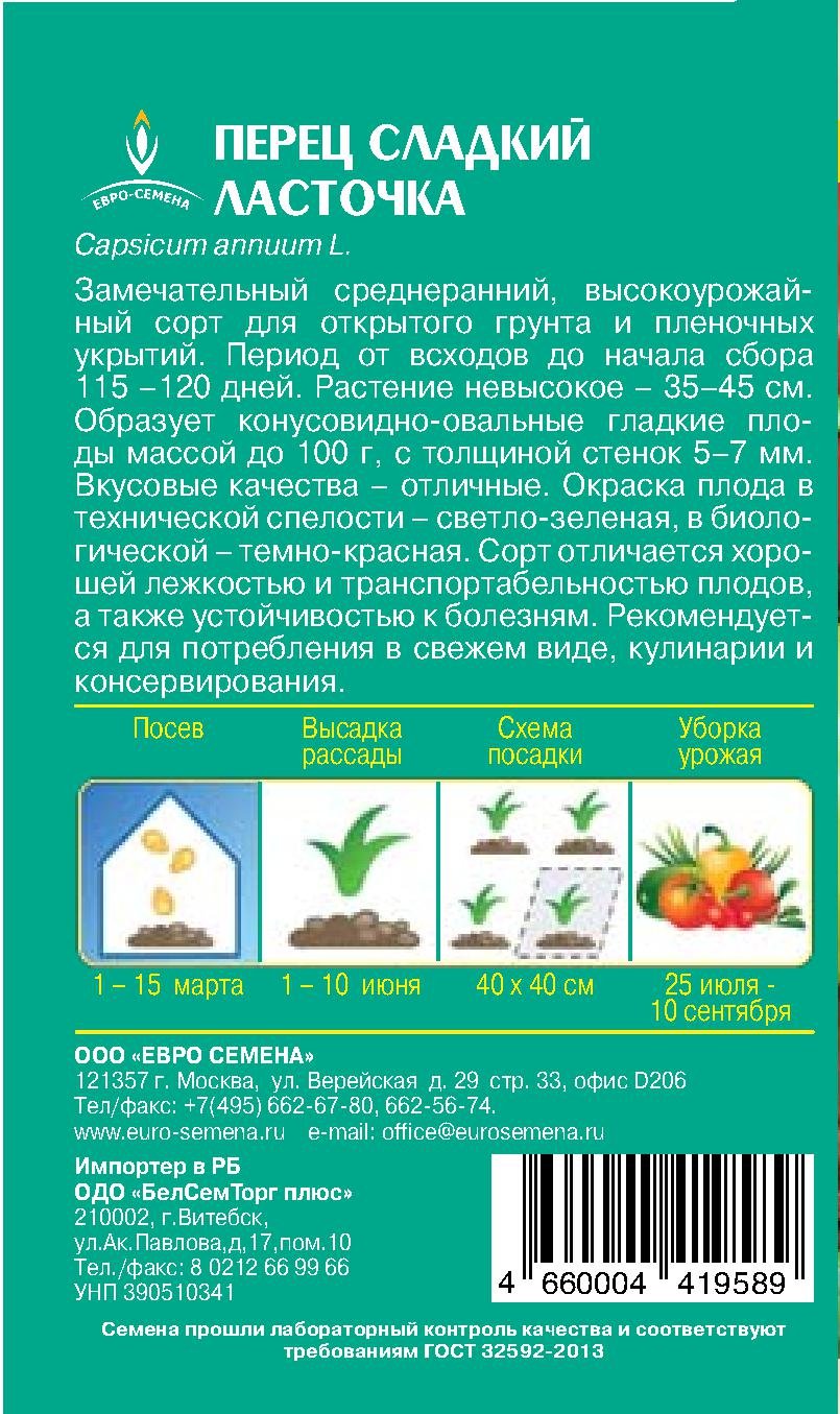 - Семена Перец Ласточка сладкий цв/п 0,3г